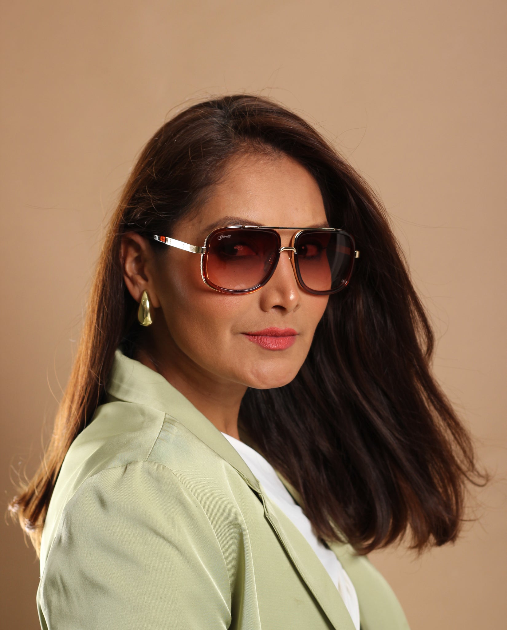 Los lentes Goretti ELEGANCIA DORADA de gran tamaño aportan presencia y estilo sin esfuerzo. Su estética refinada los convierte en el complemento ideal para un look moderno, elegante y seguro.
